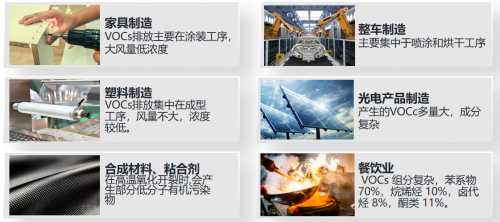 眾所周知,臭氧和PM2.5濃度的增高是大氣復合污染的重要特點,而VOCs(揮發性有機物)在大氣中的濃度雖然不高,但對環境的影響卻很大,同是也是造成大氣復合污染的主要條件之一。具體來說,VOCs是造成大氣中臭氧等污染物濃度增加以及向二次有機顆粒物轉化,最終形成PM2.5的重要原因。VOCs在光照條件下能與氮氧化物發生光化學反應生成臭氧,同時也是PM2.5二次顆粒物的重要前體物,能夠通過氧化、吸附、凝結等過程最終生成二次有機顆粒物,也就是說,VOCs、臭氧和PM2.5是彼此關聯的。 簡單來說就是,臭氧和PM2.5都是復合型大氣污染的特征污染物,如果不對VOCs排放進行管控,就會增加臭氧污染和PM2.5污染出現的可能。 來源多樣,成分復雜,VOCs治理成老大難問題